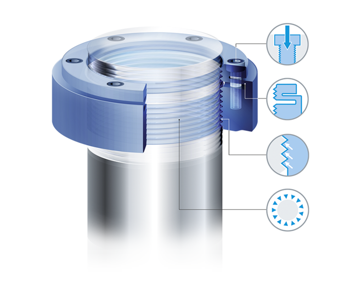 Spieth导套--可反向调整的圆形导套和夹具--为当代高效和经济的机器设计开辟了新的空间,由于Spieth原理,它具有高功率密度和高动态载荷。